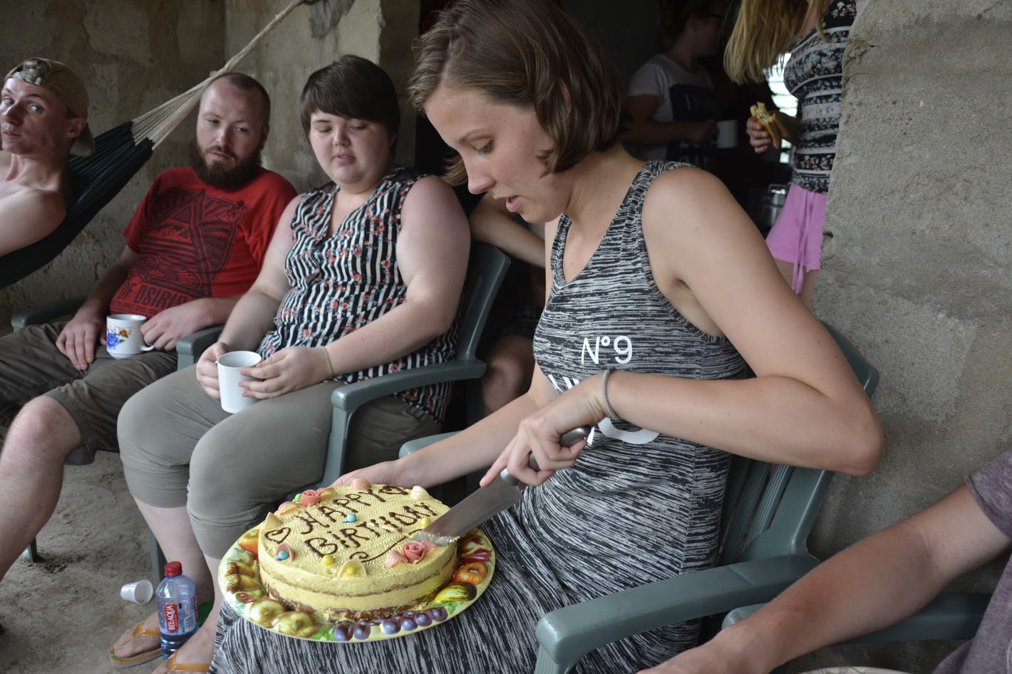 Tot ik bij het ontbijt ineens een heerlijk taart kreeg, het was mijn verjaardag. Ik werd 21 jaren jong en krijg een heerlijke taart als ontbijt. Natuurlijk heb ik de taart gedeeld met alle andere van de groep. En als kers op de taart kwam Cyprus (onze gids) met goed nieuws. Omdat iedereen zo nat geregend was, gingen we vandaag al naar Axim Beach Resort. Zo kon iedereen even lekker alle natte spullen uithangen en lekker een douche nemen. Ik zal jullie vertellen, de taart was heerlijk maar het vooruitzicht om naar Axim te gaan was helemaal heerlijk.