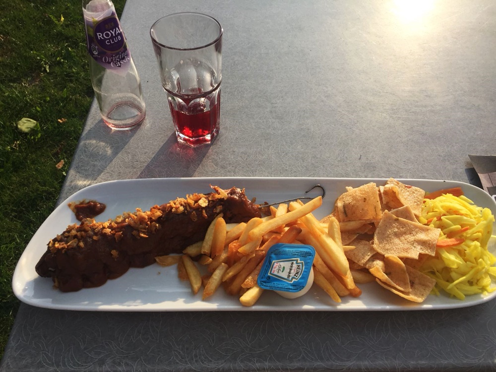 De eerste dag van ons verblijf, lunchen we bij het restaurant. We kiezen allebei voor de kroketten op brood en de service is goed. Alle medewerkers zijn enthousiast en vriendelijk en het eten is lekker. Het leukste van het restaurant? Het uitzicht! Je kijkt recht over de Vecht en zit heerlijk in het zonnetje te genieten van een lekkere lunch, het leven is heerlijk. De kaart is uitgebreid en je kunt veel kiezen. ’s Avonds eten we weer in het restaurant en tot 20:00 zaten we zelfs nog buiten in een korte broek. Ik kies voor de saté en Daniëla kiest voor kibbeling. Het is eigenlijk een kindermenu maar de medewerkster vertelt ons dat het geen probleem is. Ook ’s avonds is het eten heerlijk en de keuze ruim.