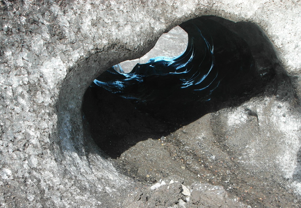 Klopt, dat komt door de aslagen van de uitbarstingen van de vulkaan die onder de gletsjer ligt.