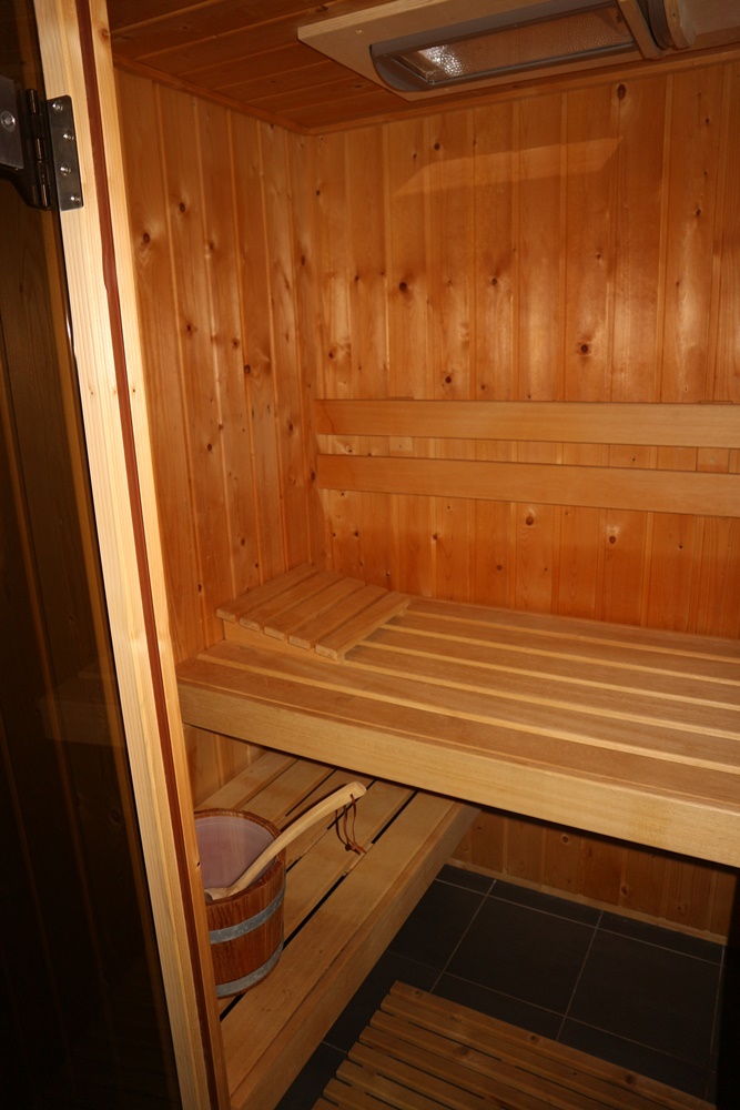 We verbleven in een 4-persoons luxe huisje. Er zijn twee slaapkamers met twee bedden, een volledige keuken, een ruime woonkamer, een badkamer, een los toilet. En als klap op de vuurpijl ook een sauna en een zonnebank.