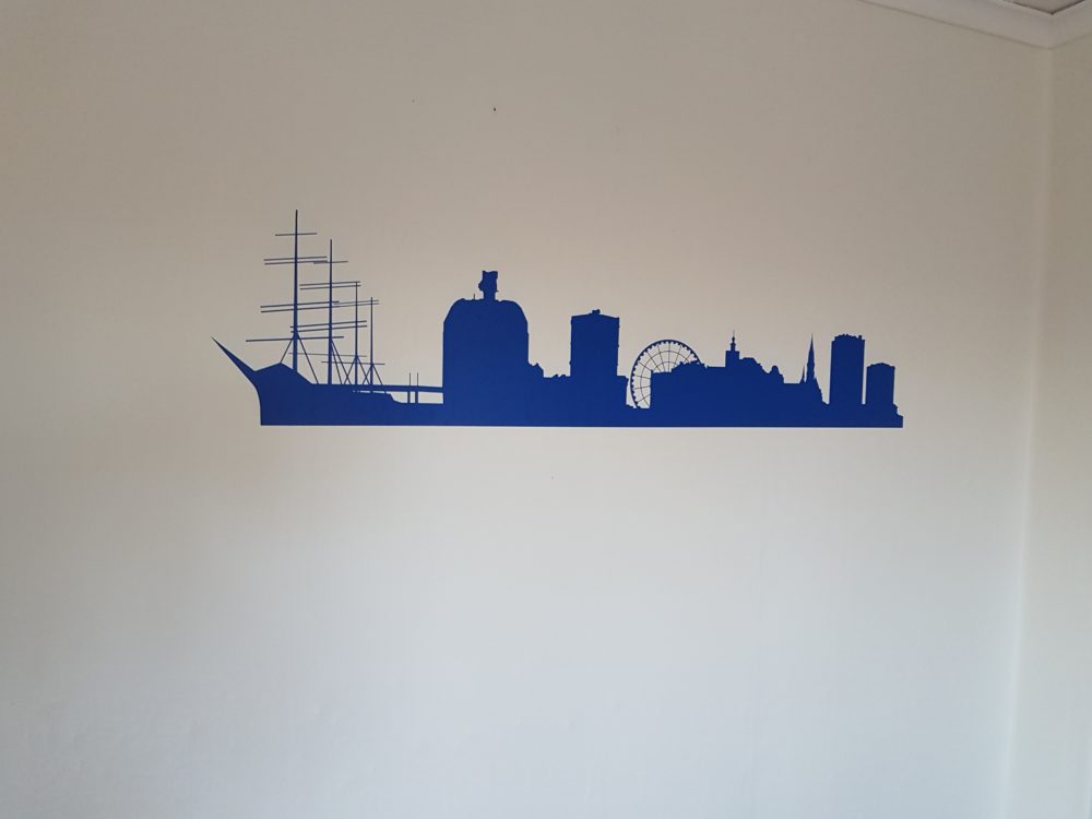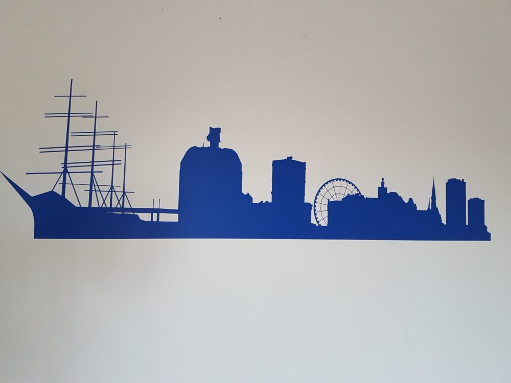 Na het lezen van de handleiding was het helemaal duidelijk en kon het spannendste gedeelte beginnen, het opplakken van de muursticker. In de handleiding stond echter dat je aan de bovenkant moest beginnen, maar door de kleine details aan de bovenkant was dit lastig. Uiteindelijk zijn we toch aan de onderkant begonnen met plakken en dat werkte beter. Waarschijnlijk is dit voor andere muurstickers wel de beste manier maar voor de skyline Gothenburg muursticker merkten wij dat dit het beste werkte. Bij het opplakken hebben we een schraper gebruikt, dit is wel een handige tip. Je kunt de muursticker dan goed glad strijken. Een ander handigheidje is het gebruik van een waterpas. Als je het langs een rand doet is dit natuurlijk niet nodig, maar wanneer je het net als ik midden op de muur wil is het wel mooi als de sticker recht hangt.