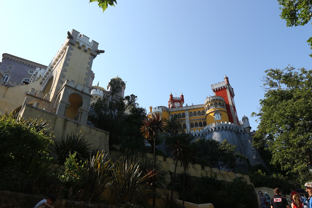 Als je met de trein aankomt in zie je meteen het paleis op de heuvel liggen. Vanuit iedere hoek kun je het wel zien liggen, met zijn opvallende gele en rode kleuren. Het voormalige zomerverblijf van de koninklijke familie van Portugal is een opvallend gebouw. Door de combinatie van verschillende stijlen: Neorenaissance, Moors en Neogotiek. Iedereen die naar Sintra gaat, bezoekt ook het paleis en de tuinen. Wij hebben ervoor gekozen om alleen de tuinen te bezoeken. Een goede reden om nog eens terug te gaan om het paleis ook van binnen te kunnen bekijken. De tuinen zijn prachtig en vanuit verschillende plekken heb je een fantastisch uitzicht op het paleis. Alleen de tuinen kun je al uren aan besteden, moet je nagaan ook het paleis.