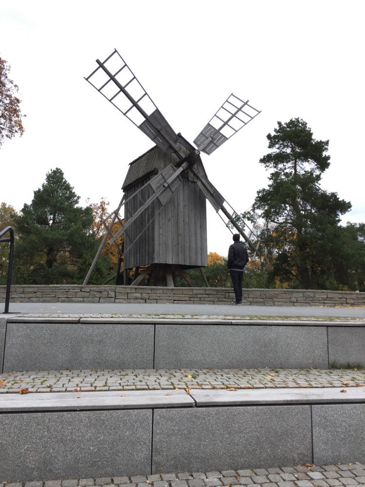 Hier zie je enkele traditionele Zweedse gebouwen. Het linker gebouw is een voormalige Sami woning, Sami is de bevolking in Zweeds lapland. Rechts zie je een traditionele Zweedse molen en mijn vriend (hij is molenaar) was daar natuurlijk niet weg te slaan. Daarom kon deze foto in deze blog natuurlijk niet ontbreken. Ook voor molenaars is Skansen erg aantrekkelijk, er zijn maar liefst vijf molens te vinden in het park.