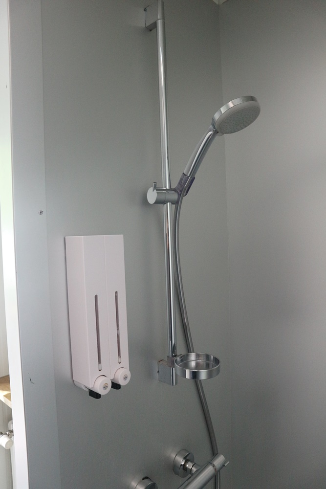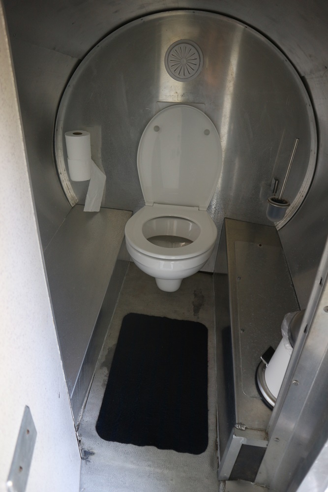 Doordat er beperkte ruimte is, hebben ze de douche en wasbak in een bijgebouw geplaatst. Het toilet bevindt zich wel in het vliegtuig, helemaal aan de achterzijde.