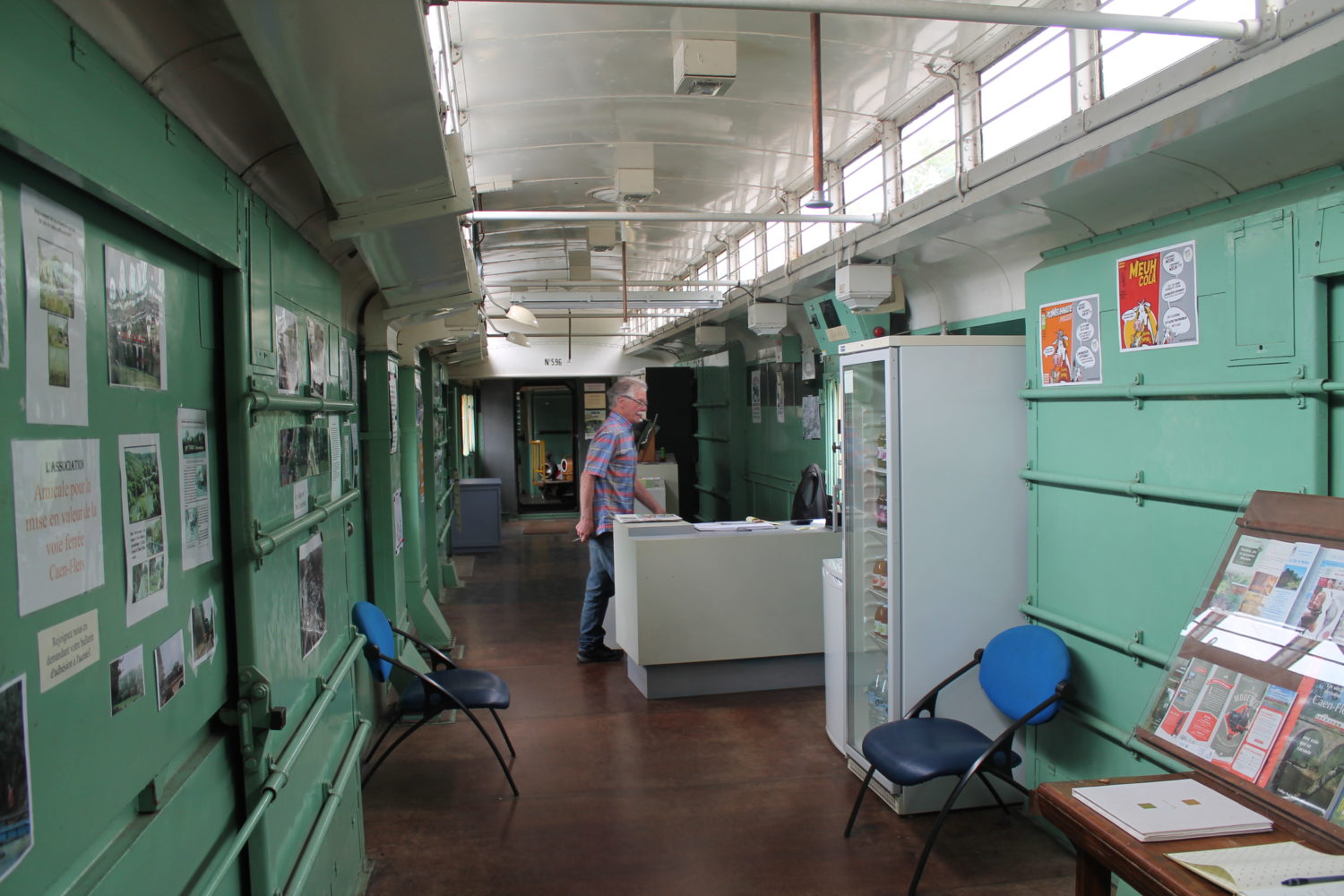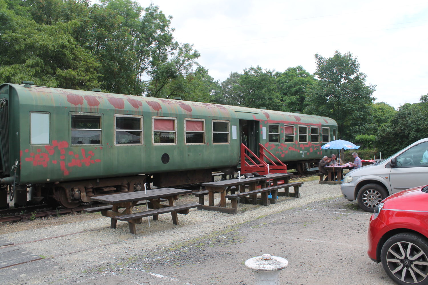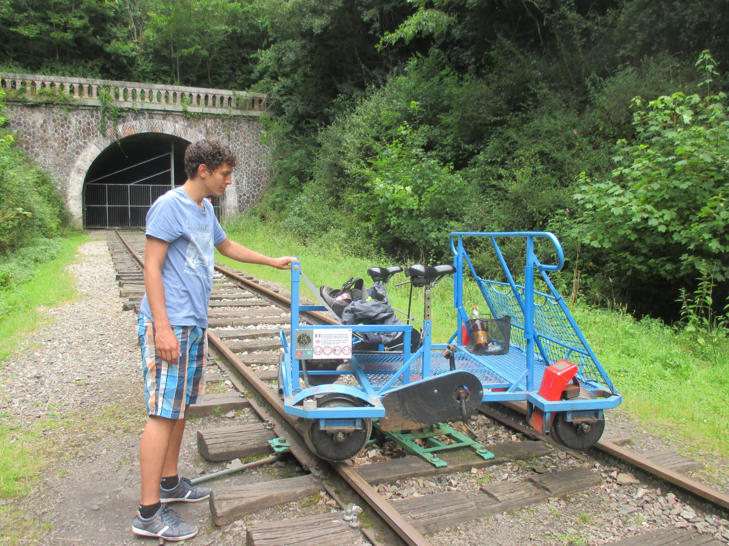 Deze fiets past precies op de spoorrails en je kunt er met zijn vieren op, twee fietsen en twee zitten. Wij vertrokken van het dorpje Pont-Erambourg, alleen het vertrekpunt was al erg gaaf. Er stonden verschillende oude treinen waarin je een kijkje kon nemen en die eigenlijk fungeerden als een echt museum.
