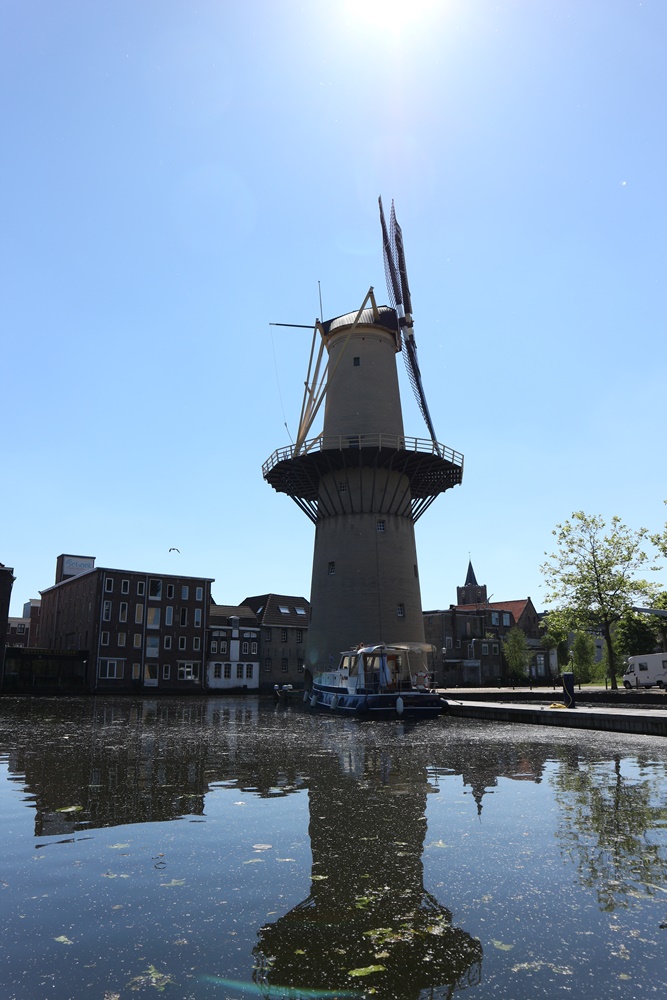 Zoals ik al schreef, de route begint bij molen de Kameel. De meeste mensen die wel eens in Schiedam komen, of langs Schiedam, kennen deze molen. Je kunt hem namelijk goed zien vanuit de trein en vanaf de snelweg. Deze molen verloor in 1865 zijn wieken, as en kap, en is na een brand uiteindelijk gesloopt. De Kameel zoals je hem nu ziet, is gebouwd in 2011. Wat leuk is dat je in de gehele molen herinnert wordt aan hoe de originele molen functioneerde en hoe die molen eruit zag.